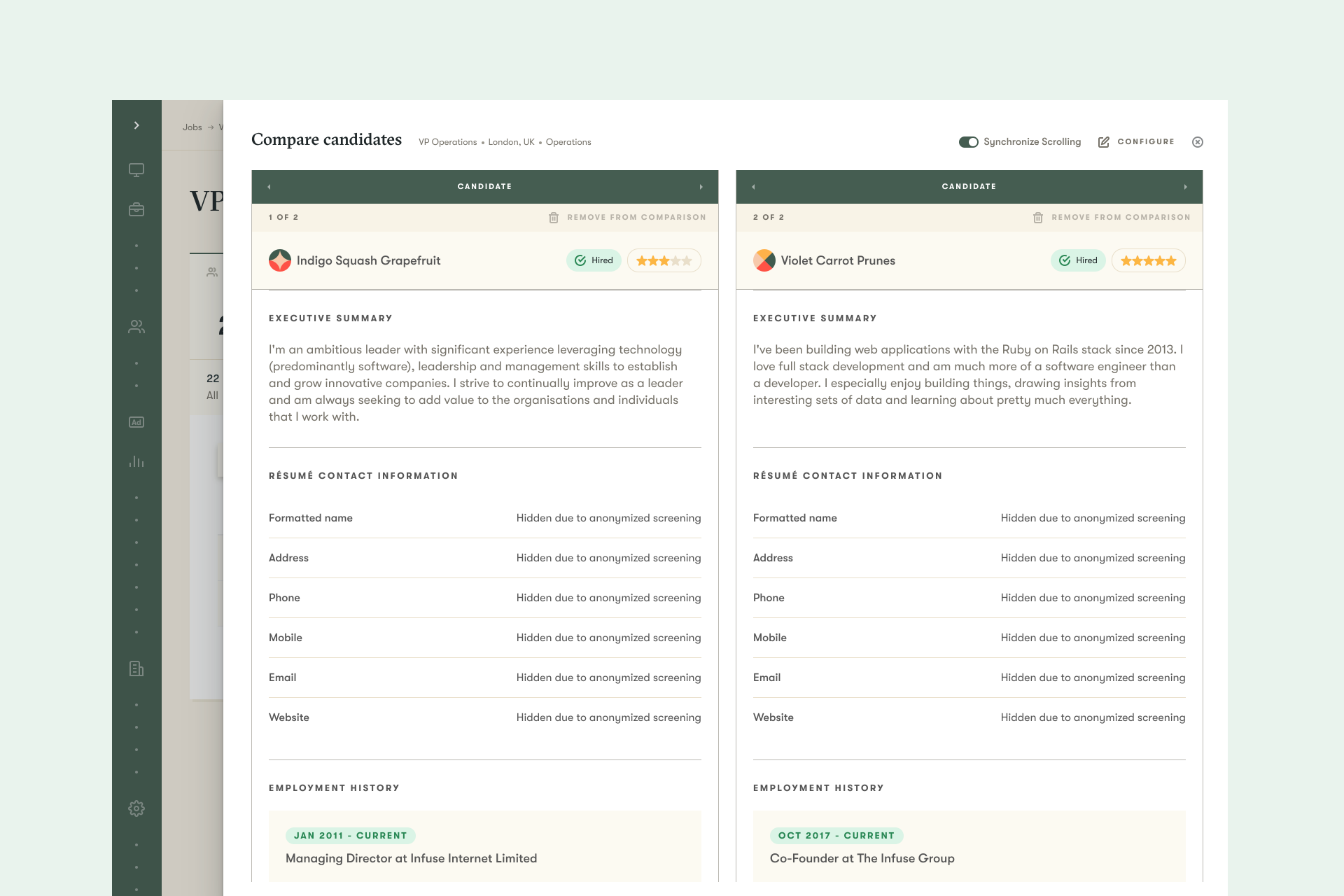 - Anonymized hiring to minimize unconscious bias in the hiring process.