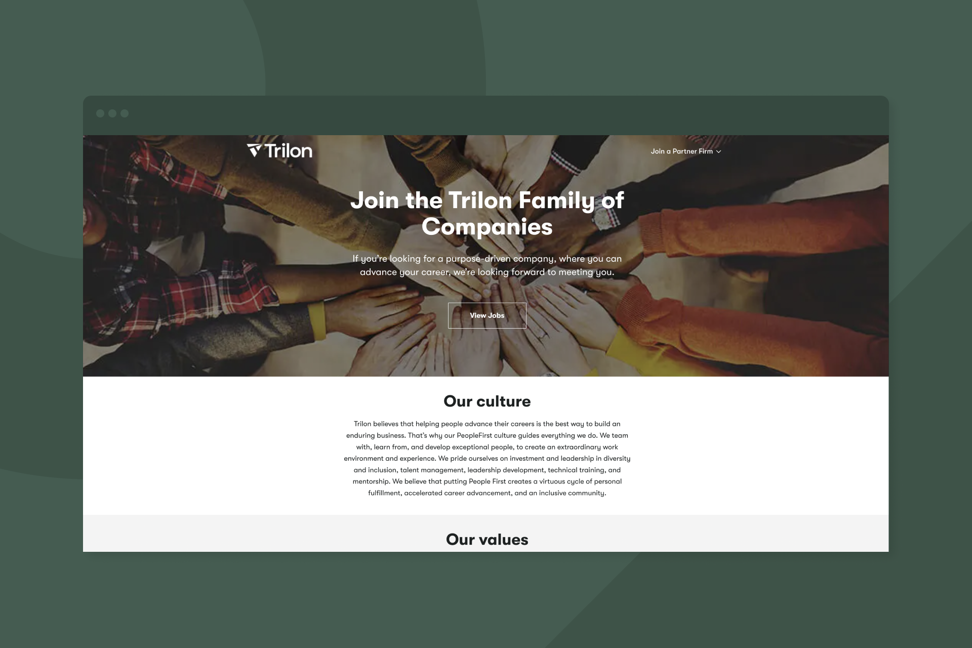 More than just a list of jobs. We'll build a personalized careers website that’s carefully designed to attract the right people, tell your story, and deliver a seamless candidate experience from first click to application.