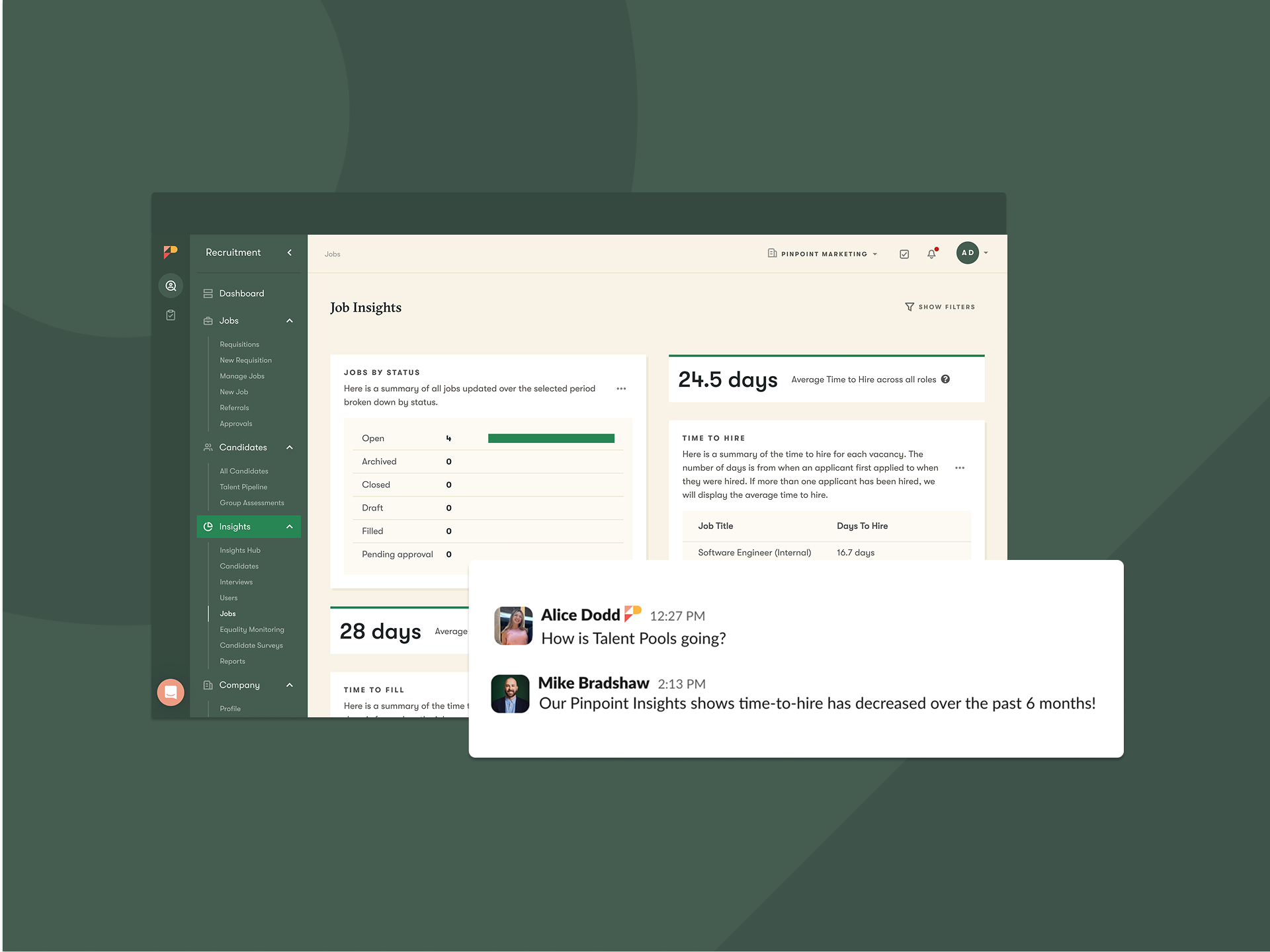 You can look at this on a macro-level, or use filters to narrow your view by job, hiring manager, division, or location.