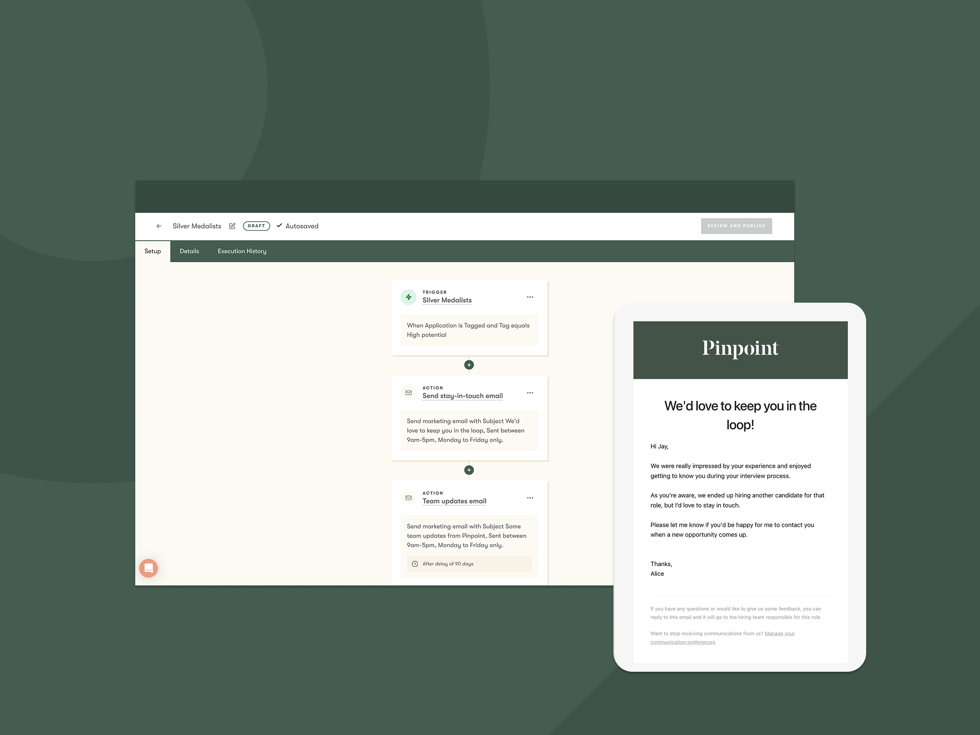 These are also the candidates most likely to drop off if you don’t nurture them. A few small, consistent touchpoints are all it takes to keep the relationship alive.